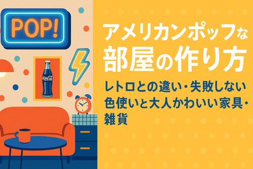 アメリカンポップ部屋で写真映え!失敗しない色使いや家具配置のコツ、賃貸向けDIY、おすすめな家具・雑貨をご紹介。初心者でも簡単に大人かわいい部屋が叶います。